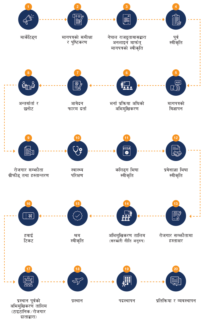 वैदेशिक रोजगारीमा जान चाहनेहरूका लागि न्यायोचित भर्ती प्रक्रिया मार्फत शुन्य लागतमा रोजगारीको अवसर प्रदान गर्नुका साथै हाम्रा ग्राहकहरूलाई व्यावसायिक भर्ती सेवा प्रदान गर्ने